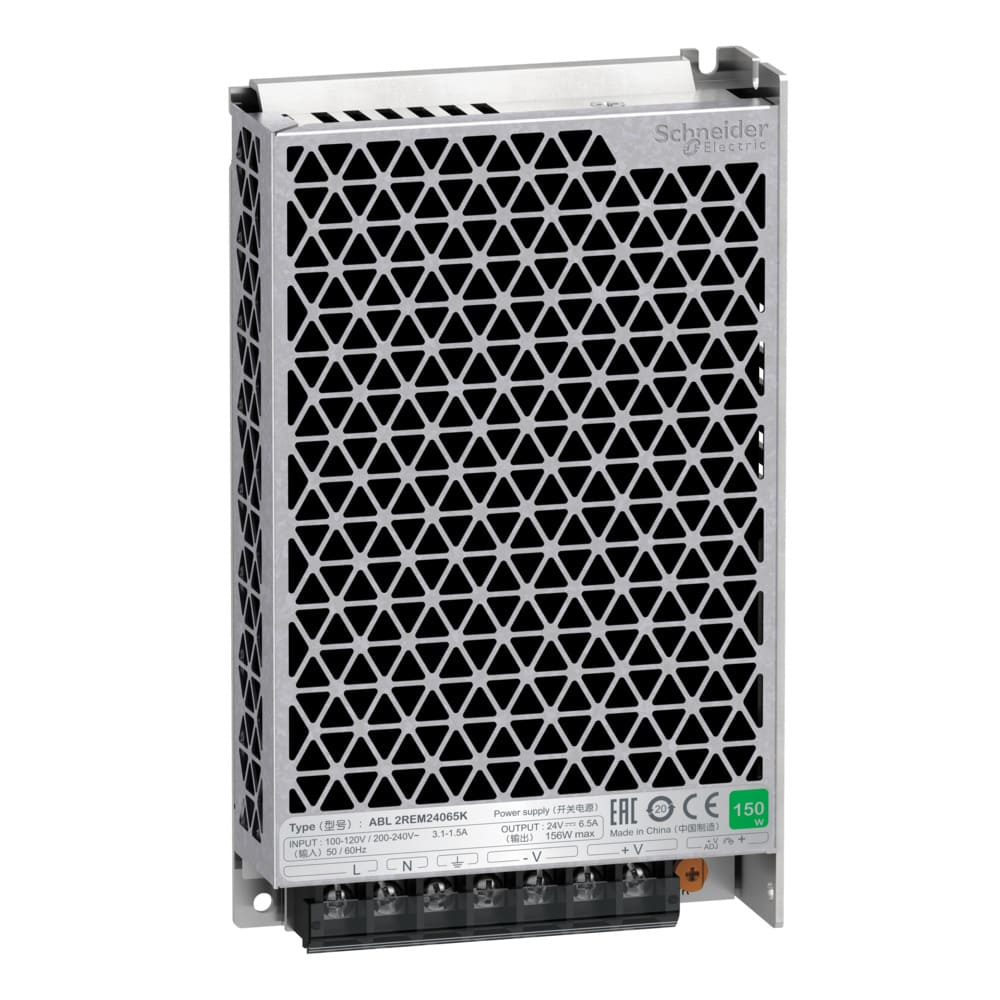 Esta fuente de alimentación pertenece a la gama de fuentes de alimentación Easy Modicon (anteriormente conocida como Phaseo Easy). Se trata de una fuente de alimentación regulada conmutada de 24V DC, modelo 350W, con una tensión de salida de 100V a 240V AC y una potencia nominal de 351W. Su corriente de salida es de 14,6A. Ofrece un mejor rendimiento y es rentable. Su refrigeración es a base de aire forzado, con ventilador DC integrado. Dispone de conmutación manual de tensión. Su protección contra hipo sobrecarga es del 110-150%. Mide 215 mm de ancho x 115 mm de alto x 30 mm de profundidad. Esta fuente de alimentación está preparada para máquinas repetitivas. ABL2 ps están certificados con: CE, EAC, KC, RCM, EN62368-1(seguridad), EN 61000-6-2, EN 61000-4-2/3/4/5/6/8/11 (EMC), 55032 clase B, RoHS. Esta fuente de alimentación tiene orificios de fijación para montaje en panel o montaje en soporte de 4 esquinas. Mejor rendimiento con rentabilidad. Diseño inteligente.